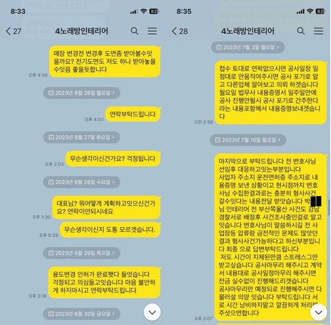 여기서부터 시작, 계약 기간인 4월3일~6월3일 한참 지난 7월 현시점 돈은 1억2천500 지급, 공사 상황은 잘 쳐야 50%? 완료정도이고 비싼물품은 일절빼고 벽체만 세워져있는상태입니다 마무리공사 추가견적은 8-9천만원 나오는상황입니다 너무하루하루 힘드네요