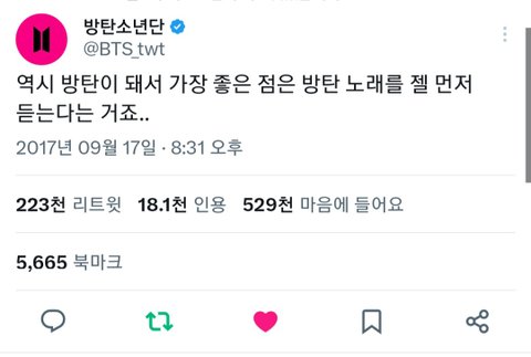 방탄 노래를 가장 먼저 듣는 거지 나 이거 옛날부터 부러웠음