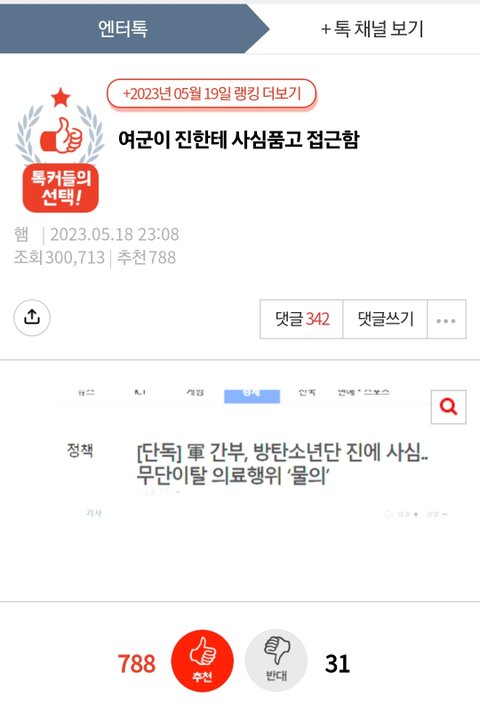 판에서도 그 여군 까느라고 장난아니었는데 사실 아닌걸로 밝혀짐 제발 마녀사냥 좀 그만해라!!!
