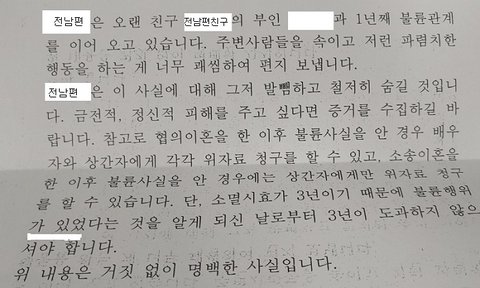 남편의 불륜 사실을 편지로 알려주신 분을 찾습니다.