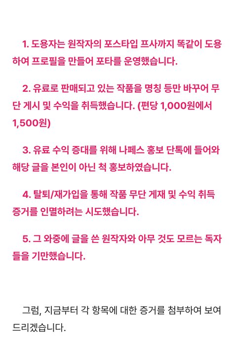 시즈니가 소설 도용해서 나페스글써서 수익창출함