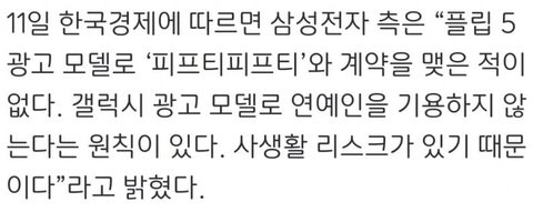 현재 삼성에선 연예인들 갤럭시 전속 모델로 안쓰는중임 아마 블랙핑크랑 방탄이 거의 마지막이었고 스트레이키즈가 갤럭시 전용 악세서리 브랜드인 SLBS 모델로 활동중인데 말그대로 악세사리고 갤럭시 기기 모델은 아님 지금은 스포츠 스타들만 간간히 전속 모델로 쓰는중인거 같음 손흥민도 얼마전에 갤럭시 공식 엠버서더 됐거든