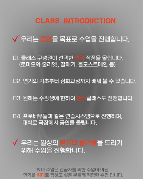 2. 연기의 기초부터 심화과정까지 배워볼 수 있습니다.