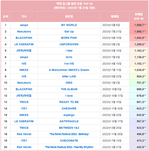 최신 걸그룹 초동순위