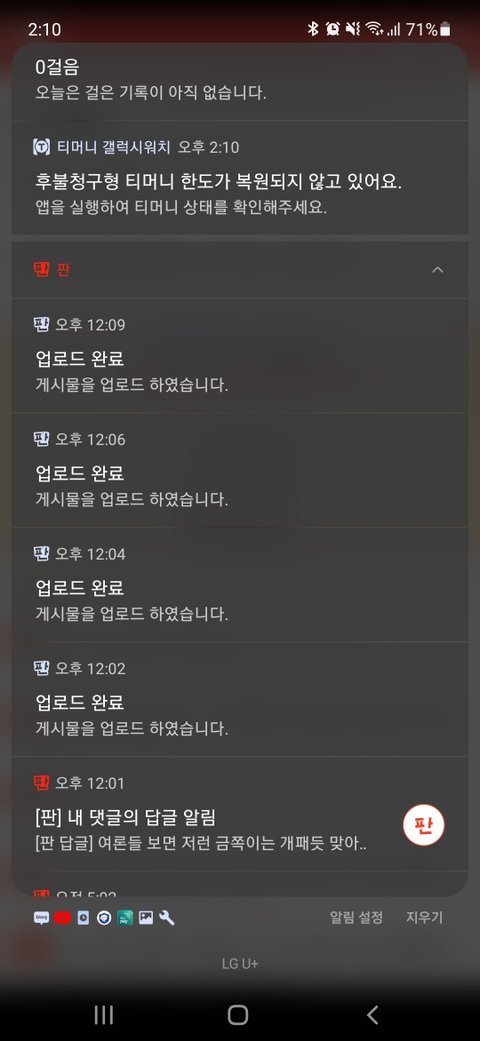 올렸다고 알람이 뜨네요