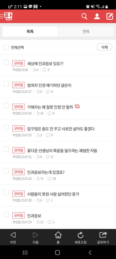 댓글 많은 톡