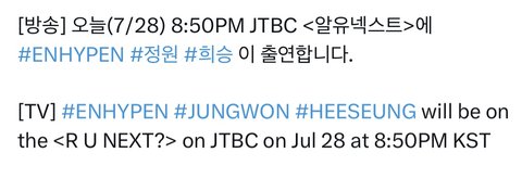 헉 오늘 알유넥스트에 엔하이픈 나옴