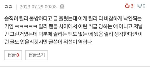 평소엔 릴리도 팬싸템 많이 받고 잘 어울려놀아 온갖 궁예 다 하던데 단편적인 것만 보고 욕하지 않았으면 함 악개팬덤이라느니 멤버 인신공격은 왜 안하는거임ㅠ