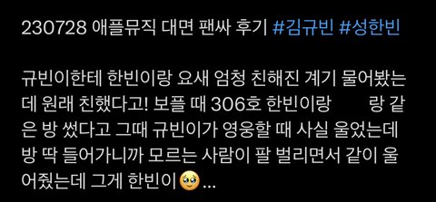 규빈이 영웅할 때 운 것도 슬프고 한빈이가 안아준 것도 슬프고 모르는 사람인데 같이 울어준 것도 슬퍼 이 대문자 F야 ㅠㅠㅠㅠ 김규빈 성한빈이랑 같이 살고 싶다는 이유가 있었어 이때부터 걍 ㅈㄴ 감동받은거야 투빈즈 개큰울음 개큰구매