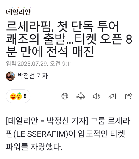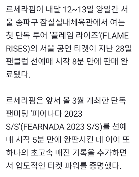 르세라핌, 티켓 오픈 8분만에 전석매진