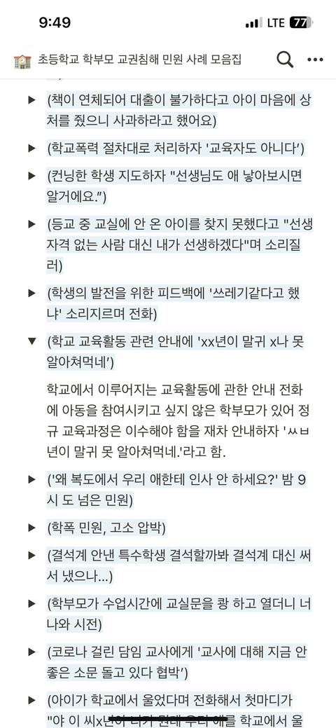 뉴스에 나오는 교권침해 사례는 전국에 있는 모든 초등학교 선생님들이 겪었던, 겪게 될 문제라고 생각해