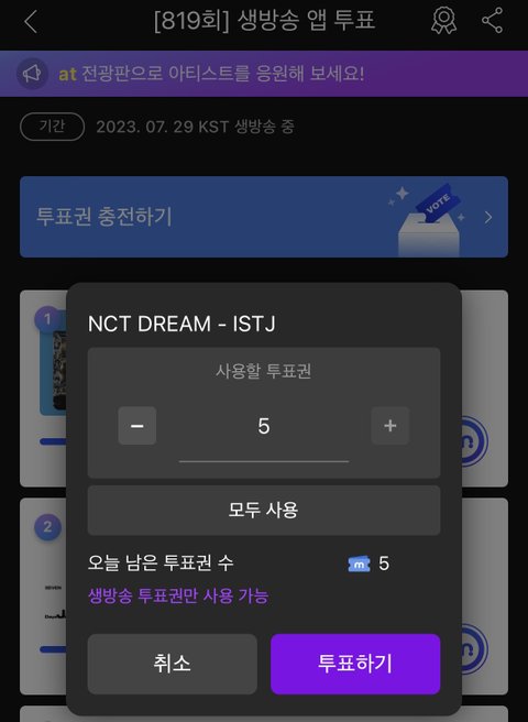 뮤빗 생방송투표 + 문자 생방송투표 두개 다 하면 돼!!
