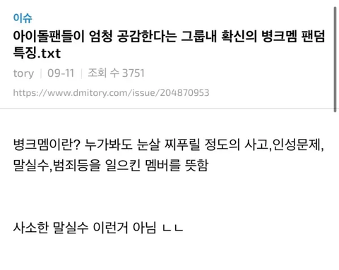 이거 병크멤 진짜 다 공통이야?