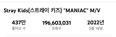 매니악 뮤비 2억뷰 달성까지 340만뷰 남았어!