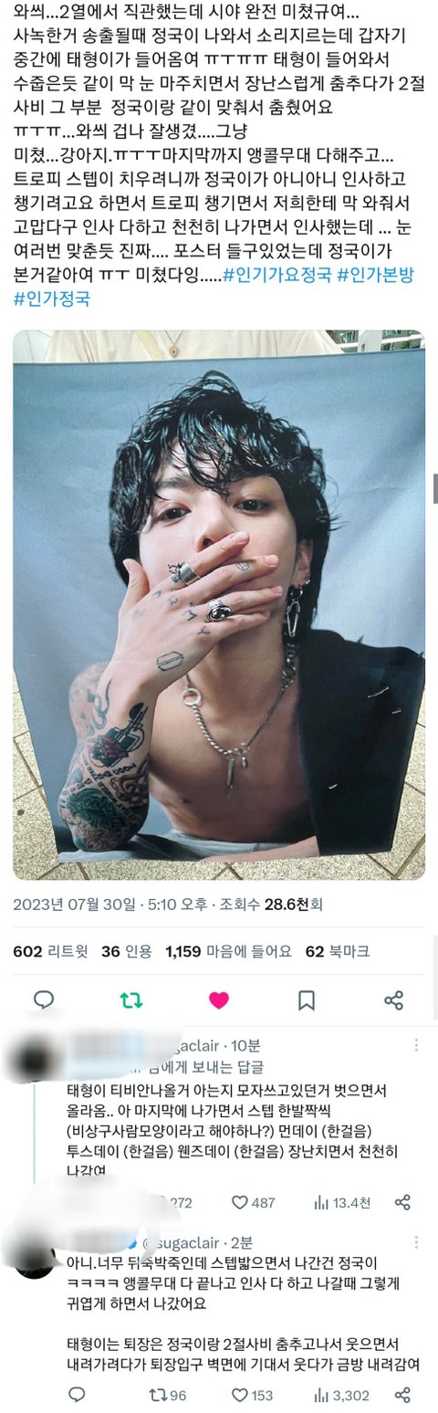 사녹 송출될때 2절 싸비 부분 잠깐 춤 추고 내려갔대 워친...