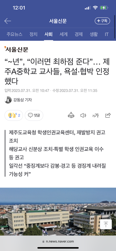 제주 교사들 폭행인정
