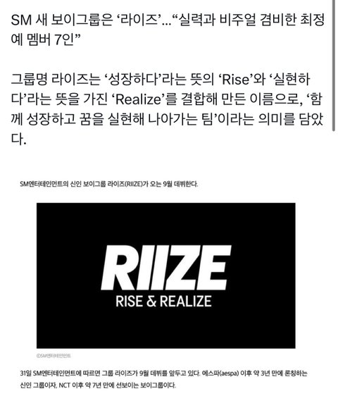 스엠 차기남돌 라이즈 9월 데뷔