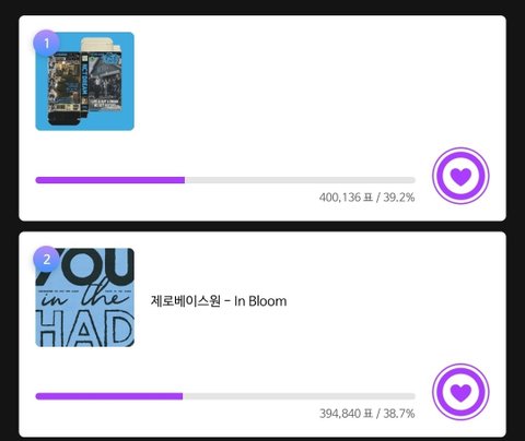 꼭 해줘 지금 1,2위 계속 바뀌는데 지금 2위거든? 빨리 투표좀 해줘ㅠㅠㅠ 공중파 1위는 한번 시켜줘야지 지금도 계속 1위랑 격차벌어지는데 좁혀야함