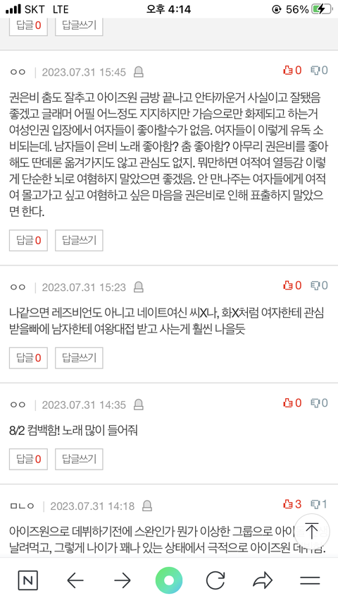 여기 댓글만 봐도 제니가 왜 판까흥인지 알겠는데 ㅋㅋㅋ 지들이 이 악물고 쳐까놓고서 아니라고 부정하는건 자아분열증인가