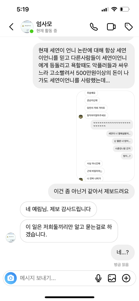 사진 첨부할게 엄사모도 엄**랑 한통속이야 얘들아 속지말고 엄**이 공구하는 효소도 사먹지마 진짜 배신감ㅋㅋㅋㅋ너무 든다. 엄사모 말로는 엄** 정계인맥도 뚫었던데 나도 이 글 뒷감당 어떻게 해야될지 모르겠다… ㅈ되는건 나하나로 족해 얘들아 속지마
