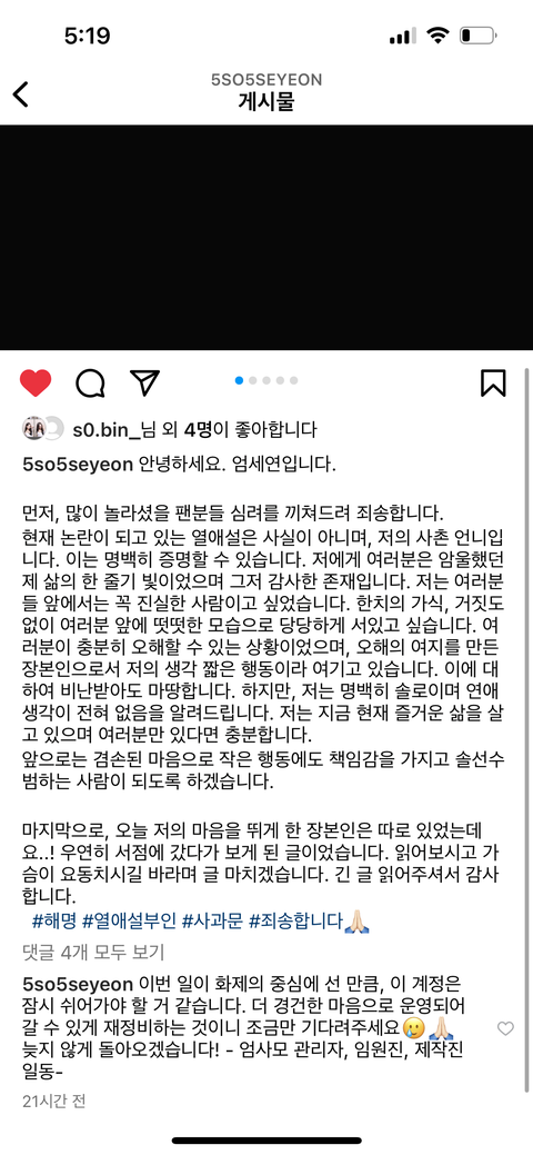 요즘 열애설 때문에 핫하던데 솔직히 난 연애 당연히 할 수 있다고 생각해 근데 팬들을 기만하고 속이고 농락하는건 좀 아니지않아? ㅋㅋㅋ 솔직히 인플루언서로 유명하지않았으면 공구도 못했을거고 이렇게 사랑받고 돈 많이 벌일 없잖아?