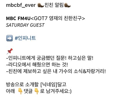인피니트 8/5(토)영재친친 인스타에 댓글 사연보내줘~!