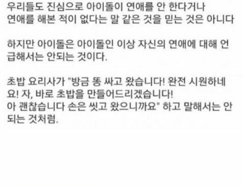 아 무슨 말인지는 알겠어. 자유롭게 연애하고 경솔하게 실언해서 이미지 깨먹으면 그냥 연예인이나 가수지 우상=아이돌은 아니게 된다는 거 아니야?