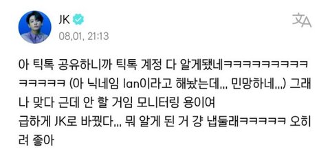 정국 틱톡 계정 털림ㅋㅋㅋㅋㅋㅋㅋ