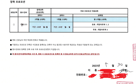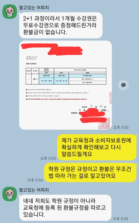 이 동의서는 학원 등록을 위해 140만원을 지불하며 작성한 동의서입니다. 학원 측에서는 제가 자필로 서명하고 동의했다는 이유로 환불이 어렵다고 합니다.상담 당시 멘토님께서는 동의서=금액 확인서이니 그냥 서명하면 된다고만 하셨지, 구체적인 환불 규정과 학원에서 말하는 2+1의 정확한 의미는 말씀해주시지 않았습니다.이러한 상황에서 저는 딱히 서명하지 않을 이유가 없었고 의심할 겨를도 없었습니다.그리고 저는 주말반으로 옮기면서 수정된 금액으로 다시 동의서를 작성했어야 했습니다.하지만 그에 대한 안내는 하나 없이 잘못된 금액이 적힌 동의서 하나로 당당하게 나오시니 화가 나네요.학원 내에서의 규정은 둘째치고 무조건 학원법이 우선이라고 알고 있는데 꼭 환불받아야겠습니다.