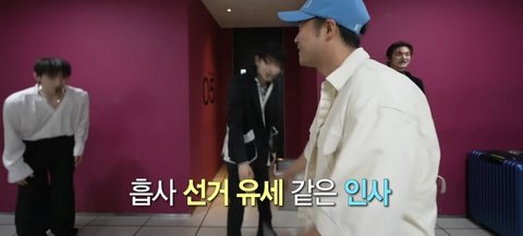 어찌할 바를 모르던 중ㅎ 붙임성 좋게 먼저 악수 청하는 후배 등장