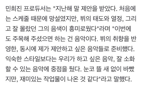 뷔가 먼저 민희진한테 제안했대