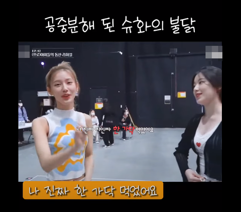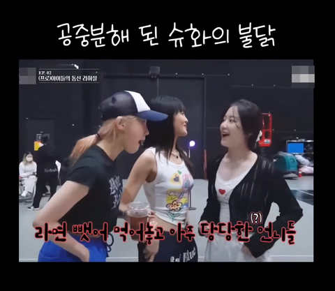 슈화의 불닭볶음면을 먹어버린 멤버들