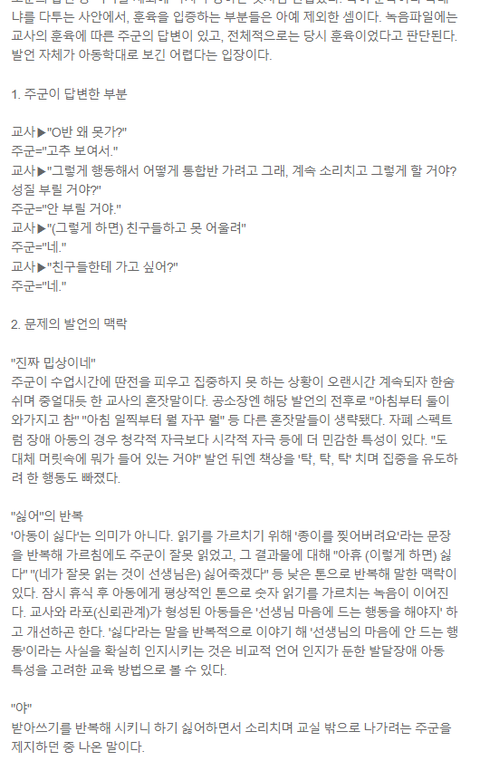 교사가 자폐아동한테 저렇게 가스라이팅하는게 정상으로 보이세요? 야야거리면서?