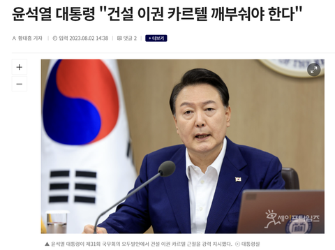윤석열 대통령이 건설 이권 카르텔 근절을 강력 지시했다.
