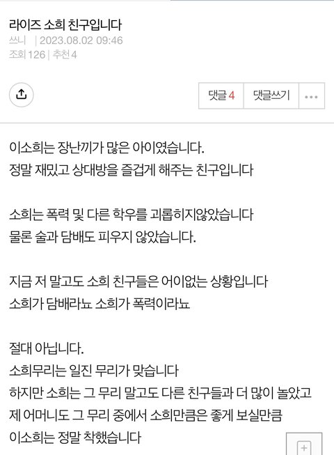 소희 친구가 쓴 글
