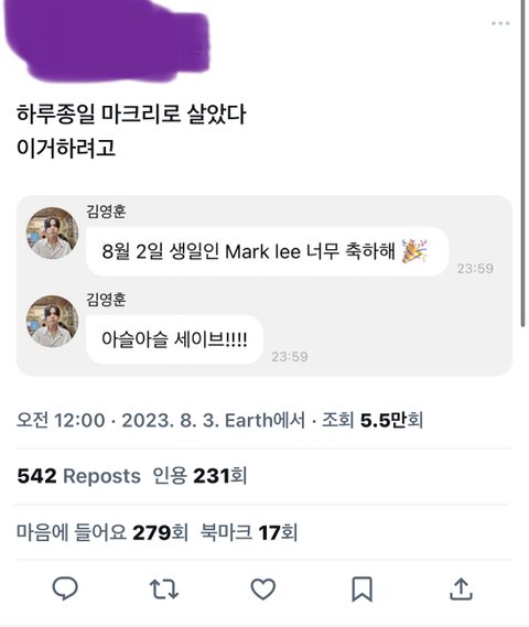 영훈이 마크 생일을 축하해준 겅미?