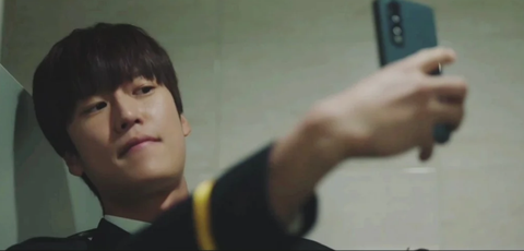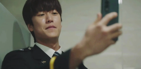 승진한 나인우가 화장실에 숨어서 혼자 몰래 신나하는 장면인데....