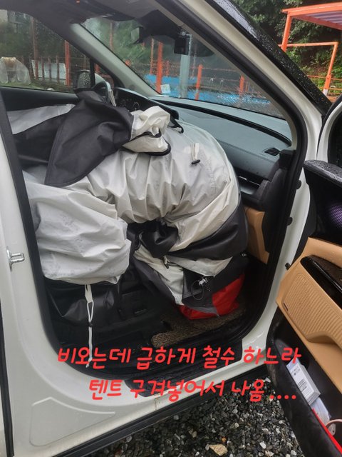 밥 차리다 말고 텐트 접고 나왔습니다. 하필 텐트 접는데 비가 미친듯이 오고.. 저희 가족 비오는데 짐정리하고 나왔습니다.