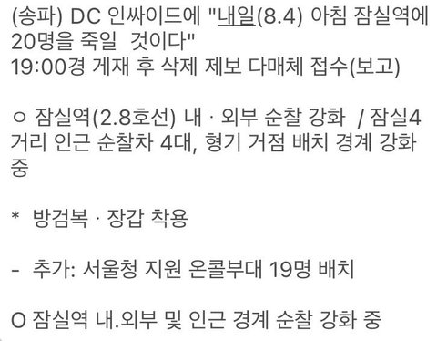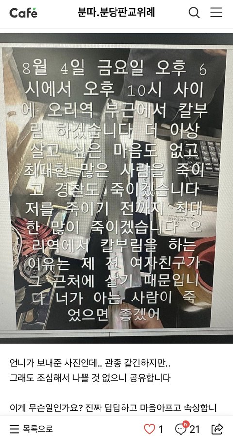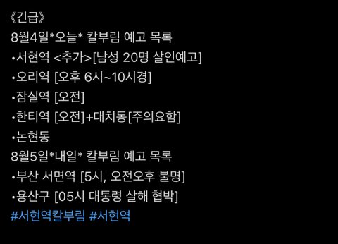오늘내일(4,5일) 칼부림 예고 목록이래 다들 조심해