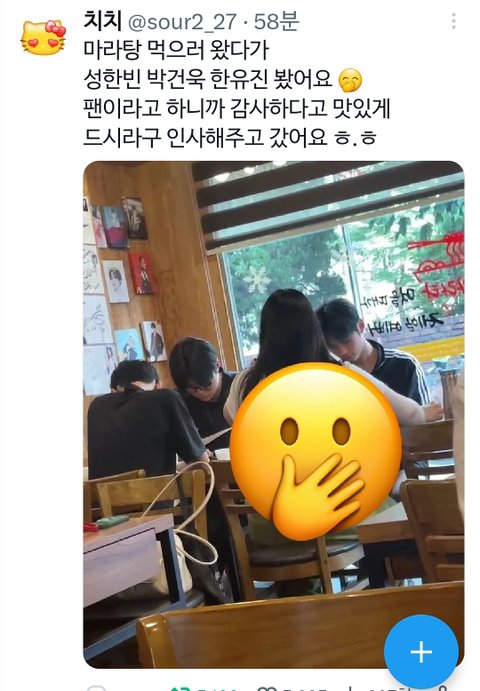 한빈건욱유진 마라탕먹으러간거 목격담뜸