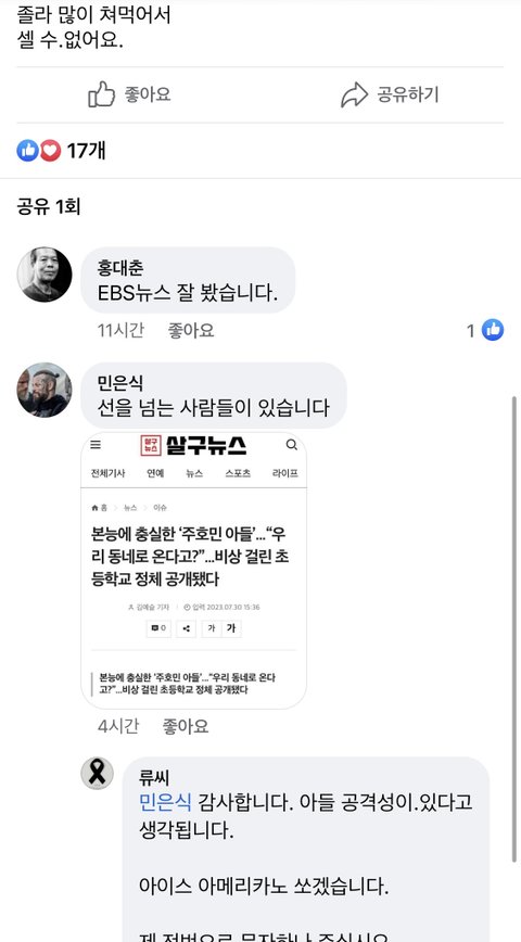"주호민씨의 영향을 받은, 소위 학계 전문가들'이' 무능함과 무책임, 비겁함" 운운하면서