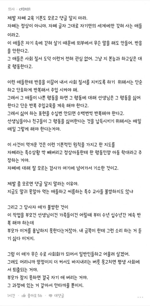 그리고 해당 아동이 자폐이고, 선생의 언행에서 별 다른 반응이 없었으니 학대라고 볼 수 없다구요?