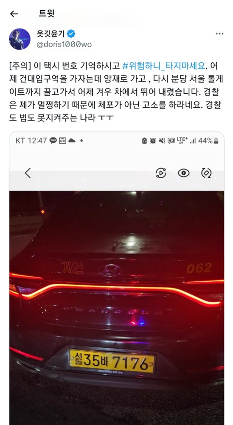 그리구 택시 번호판에 '아바사자' 이 글씨들 중 있으면 안전하다고 했잖아!!