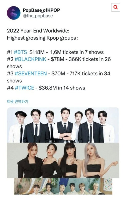 1위 방탄소년단- 한화 약 1586억, 7회공연