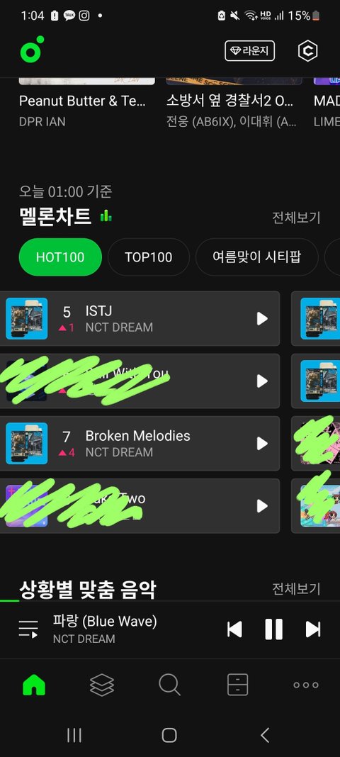 (저놈의 멜론은 활동 시작전에 최신힛 없애더니 타이틀 활동 끝나니 핫백 메인에 올리네..올초에 보니까 걸리냐마냐 차이가 겁나 크더만...)