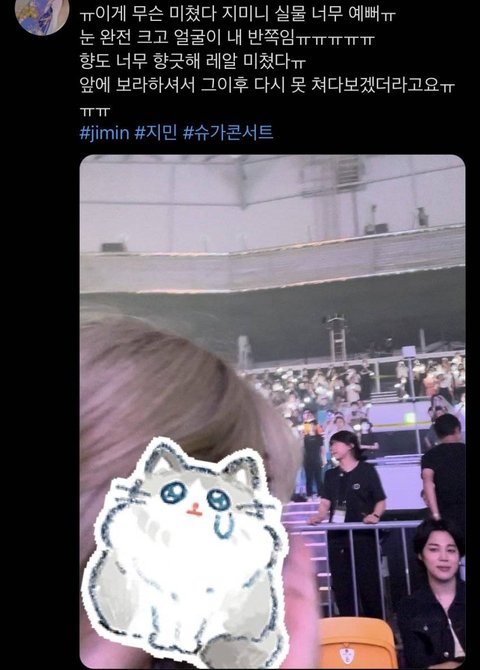 객석에서 공연보다가 나갈때도 왜케 멋있냐ㅠㅠㅠ 지민이 솔활때보다 살 더 빠진거 같은데 뭔가 나올 거 같아서 설레버림 ㄷㄱㄷㄱ