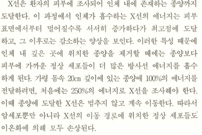 (왜지...? 아 뒤에 예시가 나온다 위에서 들어가다가 끊긴다고 했으니까 종양까지 일정한 에너지를 보내려면 진짜 강하게 쏴야 되는구나 그래서 정상피부들이 더 피해를 보는 거구..)