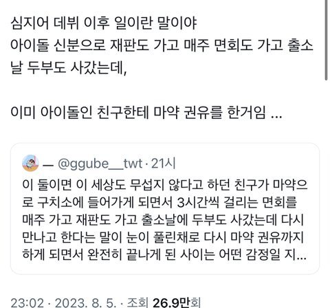 저렇게까지 한거보면 어지간히 친했던 사이는 아닌 것 같은데..옆에서 저런거 지켜보면 정신적으로도 ㅈㄴ힘듦