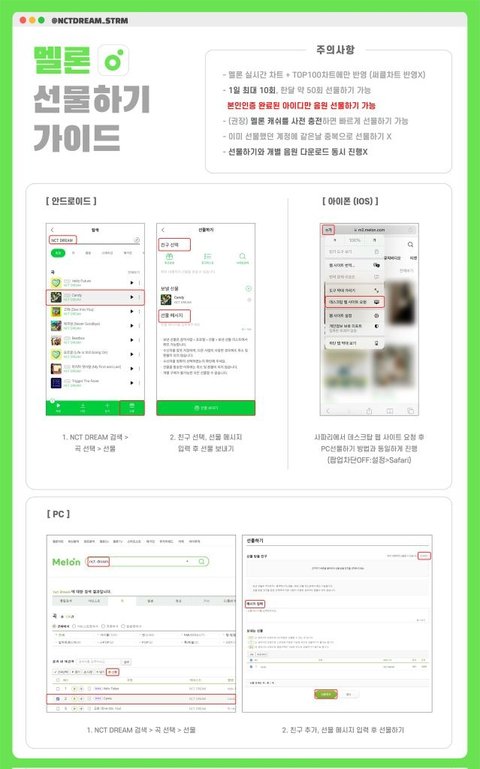 => 선물하기는 멜론차트에 반영됩니다. 음악 방송, 써클차트에는 반영되지 않습니다.