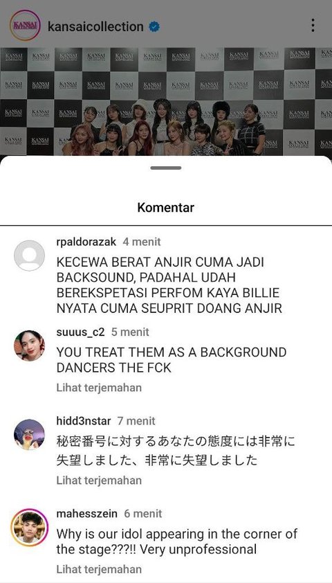 인도네시아 시크릿넘버 팬들은 일본 간사이 행사에 크게 실망했다.